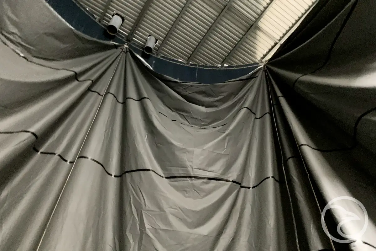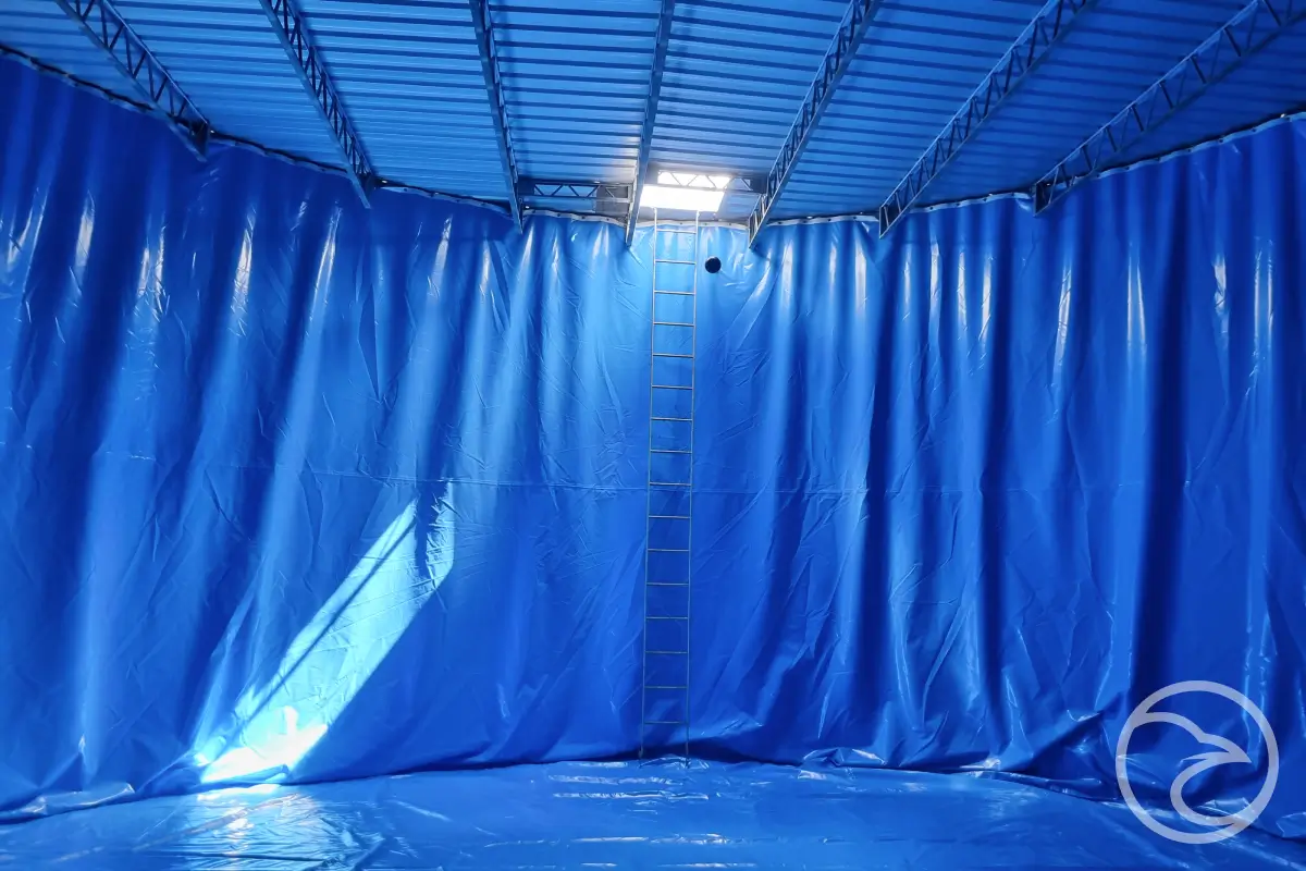Green PVC liner inside a steel fire tank